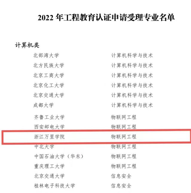日前,中国工程教育专业认证协会和教育部高等教育教学评估中心发布2022年工程教育认证申请通知,我校物联网工程专业认证申请在数千个申报专业中脱颖而出被中国工程教育专业认证协会成功受理,成为我校首个通过专业认证申请受理的专业。