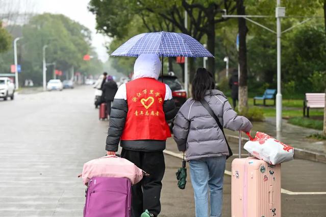 志愿服务不缺位。除了领导的暖心慰问,还有同学们的热情相助。本次开学,两个校区志愿者报名近600人,录取志愿者280名,其中大多数为党员、学生骨干。志愿者分工明确,大家都在自己的岗位上认真工作。校门口安保协助疏散门口交通,校园内进校报到组志愿者一趟一趟来回穿梭,利用小推车帮助返校同学将行李搬运至寝室楼下。蒙蒙细雨中,红马甲的身影温暖着大家。返校现场,报到流程清晰详细、秩序井然,老师和学生志愿者们热情的话语、周到的服务让同学们感受到回家般的温暖。上学期结束时,宿管阿姨将每间寝室的窗户留缝通风,在同学们返校前几天,阿姨提早打扫宿舍楼道卫生,为洗衣机消毒杀菌,同学们一回到宿舍就感受到了回家般的温暖。