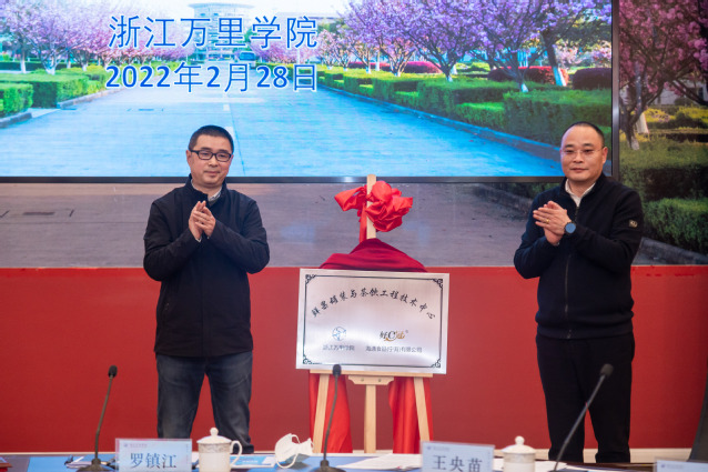 仪式上,海通食品(宁海)有限公司向我校捐赠60万元教育基金,用于工程技术中心建设和学术研究人员培养。蒋建军代表学校接受捐赠,并向罗镇江颁发捐赠证书。王央苗、杨震峰共同为校企共建的“鲜果罐装与茶饮工程技术中心”揭牌。