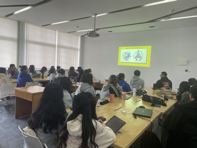 “传统视觉艺术与现代设计”是面向视觉传达设计、动画、产品设计三个专业开设的跨专业平台课程,是设计艺术与建筑学院品牌工作室制改革中的重要课程之一,由陈立萍、杨文、刘水晶、王秀颖四位专业教师联合授课。本次课程线上与线下连线互动,3个专业、4位教师、134名学生在四个教室里通过线上交流,课程组的老师分别从各自擅长的领域为同学们授课指导,使得课程更加丰富立体,实现了教学团队与教学资源的优化共享,打破了专业壁垒与空间限制。