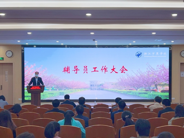 4月4日上午,我校召开辅导员工作大会。党委书记蒋建军、党委副书记王伟忠,党委宣传部、保卫部相关责任人,各学院分管学生工作书记、全体辅导员以及学生工作部、研究生处全体成员参会。大会由学生工作部部长谢莹莹主持。
