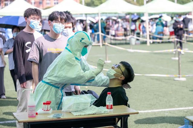下午四点,在“大白”“小蓝”“小红”及全校师生员工的共同努力下,我校所有被赋黄码师生(除去与病例有时空交集的)均已完成核酸检测。
