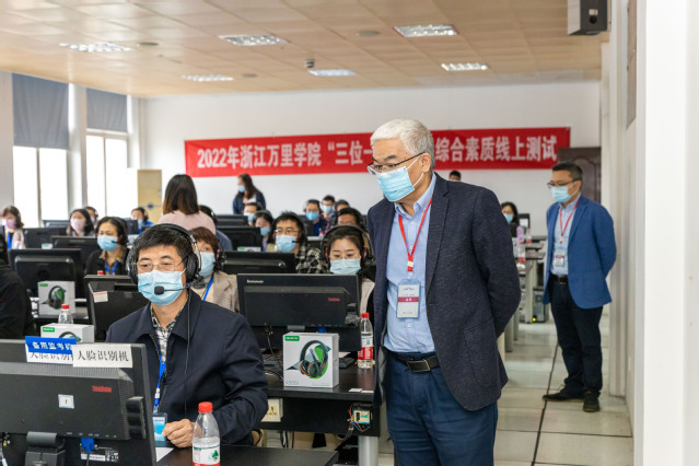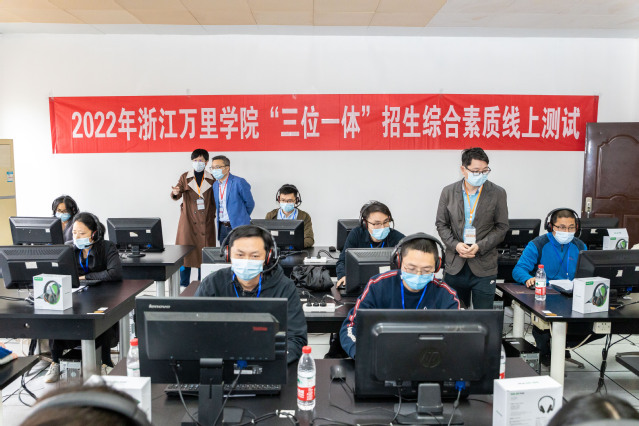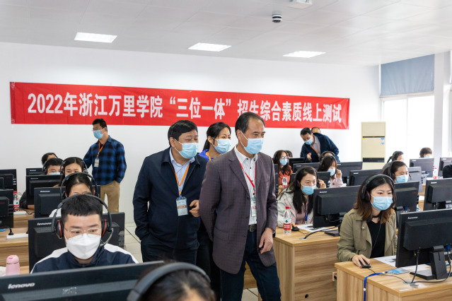 4月30日下午,我校组织开展2022年“三位一体”综合评价招生综合素质线上测试工作,校长应敏、校党委书记蒋建军、副校长马建荣到测试现场检查指导工作。