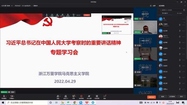 4月29日上午,马克思主义学院采用视频会议的形式,召开习近平总书记在中国人民大学考察时重要讲话精神专题学习会,马克思主义学院全体教师参加了学习。