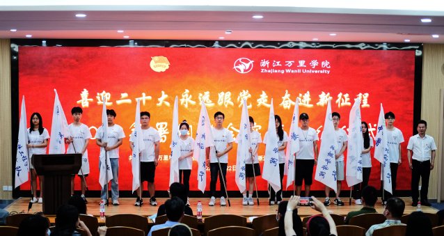王伟忠为实践队授旗并发表讲话。他指出,社会实践是高校落实“立德树人”根本任务的重要途径,是丰富大学生思想政治教育的重要载体,是培养学生实践能力、创新精神和社会责任感的有效方式,更是当代大学生运用知识、施展才华、磨练意志、实践成才的大课堂。
