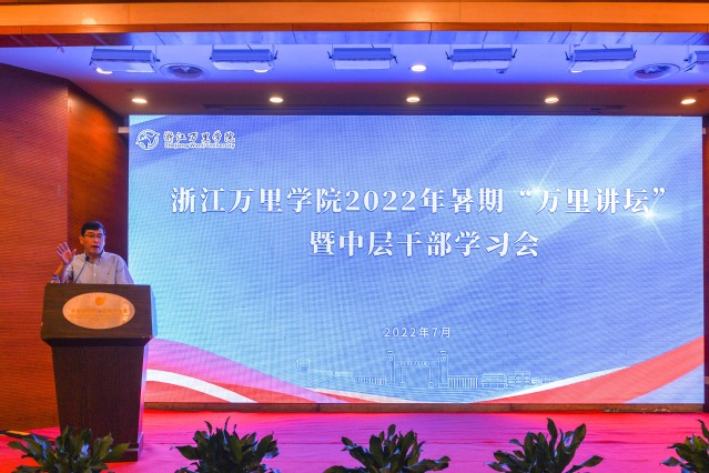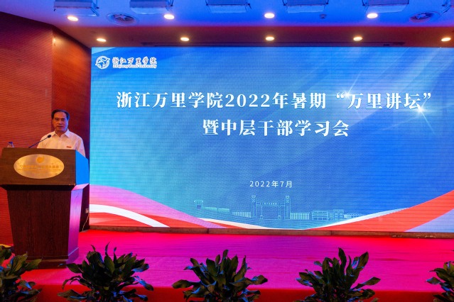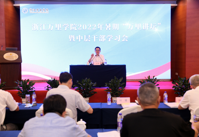 7月2日至4日,学校举行2022年暑期“万里讲坛”暨中层干部学习会。本次会议围绕“人才干部扬势能、机制文化增动能、组织布局优结构、创新发展求跨越”主题进行交流和研讨。浙江省万里教育集团领导班子及中层干部,学校领导班子、全体中层干部、民主党派负责人,以及后勤公司负责人等百余人参会。浙江省万里教育集团董事长、宁波诺丁汉大学党委书记应雄出席并作主旨报告。