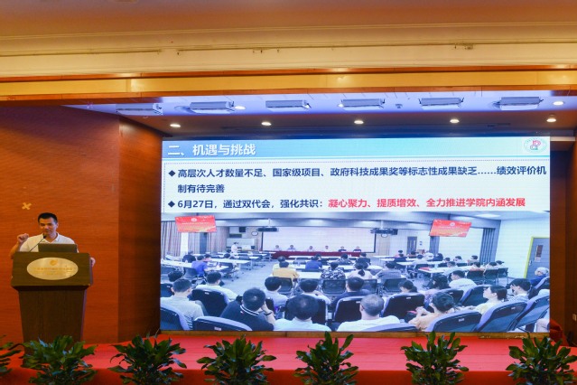 马建荣、林志华、王伟忠、孙斌、陈建革、杨震峰、吕洁分别主持了部门、二级学院、校区、研究院发言等环节,21位相关负责人一一发言,他们回顾了去年一年的工作成绩,就当前工作中存在的不足和未来目标愿景向大会作了报告。