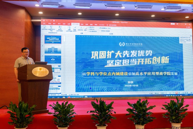 听取汇报后,浙江省万里教育集团总裁林良富对本次会议研讨给予高度评价。他指出,21位报告人对过去工作作了系统梳理,对现实工作进行了理性思考,对未来工作有了清晰思路,他们的发言,体现了六个“特别重视”的共性。一是特别重视人才培养质量,重视学生在学校、学院中的满意度;二是特别重视党建引领,发挥党组织党员的先进模范作用;三是特别重视学科专业建设和学位点的培育;四是特别重视高层次人才的引进培育;五是特别重视产科教融合平台建设;六是特别重视教育国际化。