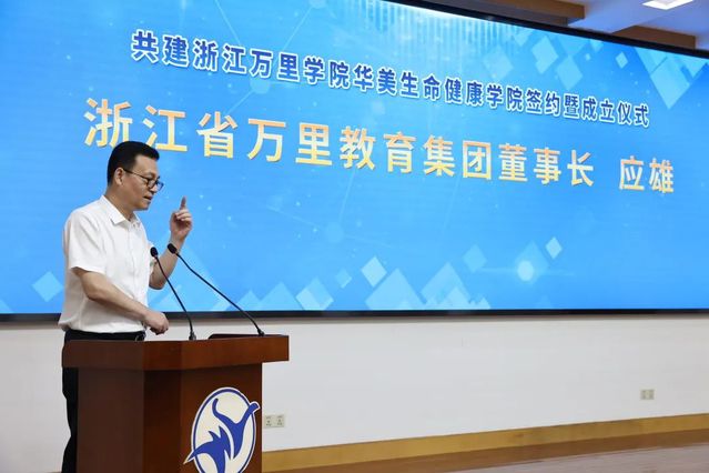 应敏在致辞中表示,我校正在迈向全面建设国内一流、国际知名的特色鲜明高水平应用型大学的奋斗目标,更加需要凝聚各方力量,互利共赢,共同发展。此次华美生命健康学院的揭牌,意味着浙江万里学院大家庭又增加了一个实体二级学院,标志着校地合作迈入全面合作、深度合作的崭新阶段。应敏说:“万里人诚挚期盼与大家同向同行,共同奋进,在高质量协同发展的新征程上,共同收获产学研用深度融合的新成果,为宁波加快建设现代化滨海大都市贡献万里智慧、彰显万里担当。”