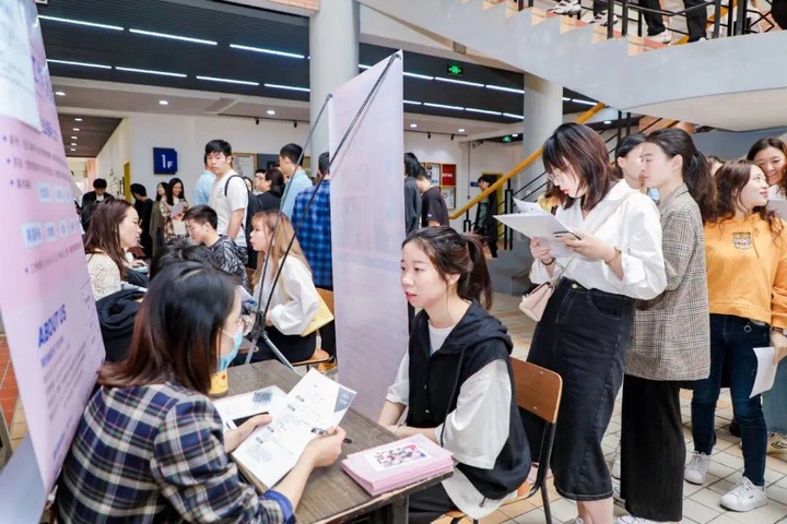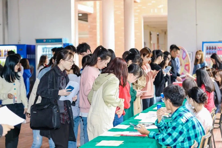 在招聘会上,来自南商的中基集团、博洋、果壳、中哲、布利杰等上百家企业,提供了超千个工作岗位,岗位类型涉及国际贸易类、市场营销、外语类、人力资源等诸多领域,专业涵盖广告、设计、国际贸易、市场营销等。在这之中,背靠互联网、需要创新能力的运营类工作尤为吸引同学们的注意,这也让有运营类招聘计划的企业面前拥有了一条长龙。据统计,招聘会共吸引近5000名求职者,收到有效简历近1854份,其中单家企业最多收到64份简历。