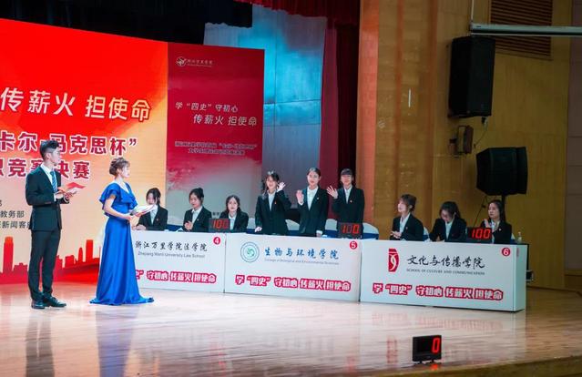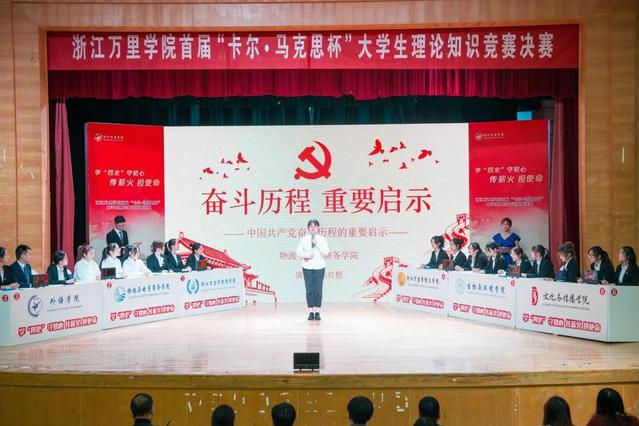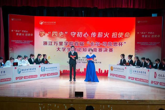 学校首届“卡尔·马克思杯”大学生理论知识竞赛由党委宣传部主办,马克思主义学院、教务部承办,宁波广电集团宁聚新闻客户端提供技术支持。活动采取现场加直播的方式进行。本次竞赛以“学‘ 四史’ 守初心 传薪火 担使命”为主题,通过以赛代学、以赛代训的形式,引导青年学生贯彻落实习近平总书记关于党史、新中国史、改革开放史、社会主义发展史学习,以及在全国抗击新冠肺炎疫情表彰大会、学校思想政治理论课教师座谈会上的重要讲话和指示精神,不断推进习近平新时代中国特色社会主义思想进教材、进课堂、进学生头脑,同时配合第三届“卡尔·马克思杯”浙江省大学生理论知识竞赛的推进。