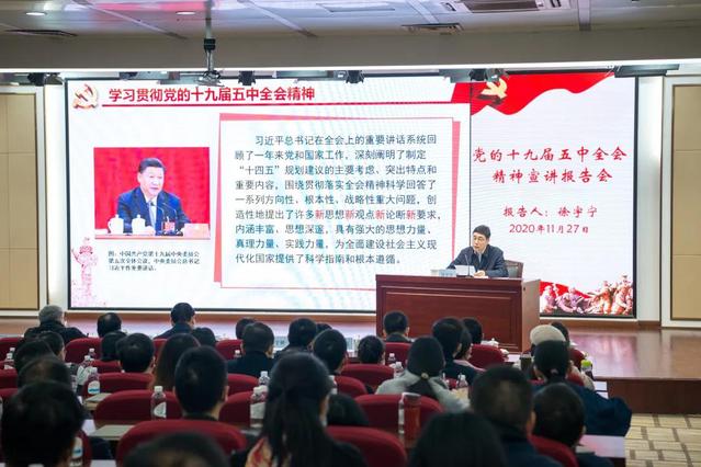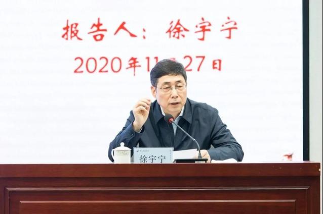 报告会上,徐宇宁以“学深悟透中央全会和省委全会精神 凝心聚力迈步现代化国家建设新征程”为题,紧紧围绕习近平总书记在党的十九届五中全会上的重要讲话和全会审议通过的《中共中央关于制定国民经济和社会发展第十四个五年规划和二〇三五年远景目标的建议》,向师生全面系统阐释了党的十九届五中全会精神和全会的重大意义,详细讲解了我国“十四五”时期发展的指导方针、主要目标、重点任务和重大举措。徐宇宁说,省委十四届八次全会提出我省“十四五”时期要争创社会主义现代化先行省的奋斗目标,并第一次系统提出忠实“践行‘八八战略’、奋力打造‘重要窗口’”的目标任务,为浙江广大干部群众指明了努力方向。
