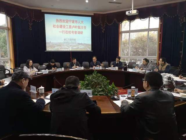 11月27日,宁波市人大常委会社会建设工委莅临我校调研指导,宁波市人大常委会社会建设工委主任卢叶挺、市人大常委会社会建设工委副主任董国君、市人大常委会社会建设工委副主任赵岚岚、市人大常委会社会建设工委办公室主任郑智旺、市人大常委会社会建设工委办公室二级调研员王琼硕一行五人作为调研团队参加了本次会议。我校副校长林志华以及法学院、校地合作部、学工部、科研部、学科建设办等负责人陪同接待。此次调研针对宁波市人大社会建设委明年的工作项目予以讨论,对 “宁波市社会民生指标体系和民意调查制度建设研究”项目做进一步探讨。