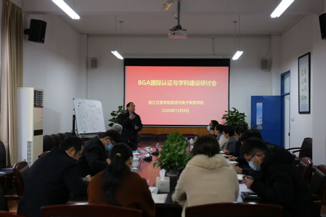 楼百均全面汇报了当前物流与电子商务学院BGA国际认证工作的前期筹备和进展情况。