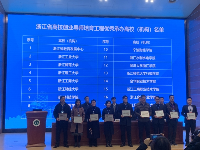 12月10日至11日,由浙江省教育厅主办、省创业导师培育工程实施指导办公室和省高等学校师资培训中心承办的省高校创业导师培育工作总结大会暨创新创业高峰论坛在浙江师范大学举行,全省94所高校创新创业学院的领导、代表180余人参加会议。我校获“2016-2020年度浙江省高校创业导师培育工程优秀承办高校”荣誉称号,4名老师成功入选省优秀创新创业导师人才库,5名老师分别荣获省高校创业导师培育工程优秀参训学员和先进个人荣誉称号。