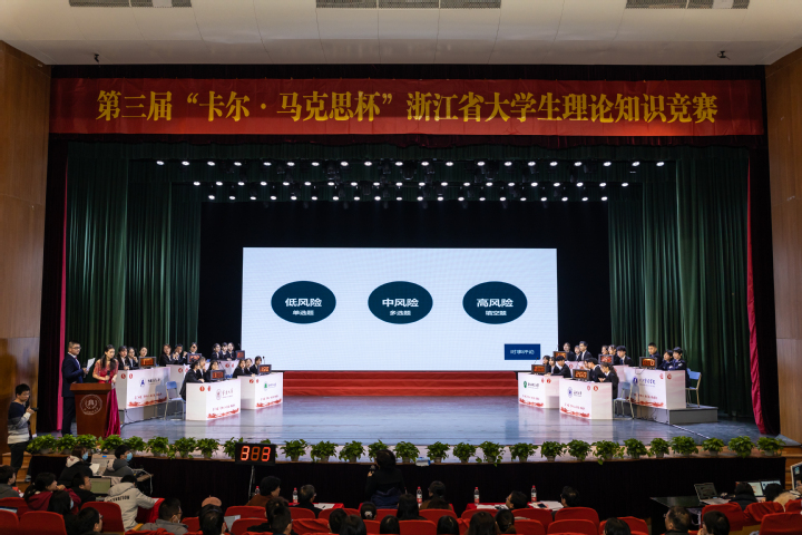 据了解,本届“卡尔·马克思杯”浙江省大学生理论知识竞赛是由省委宣传部、省教育厅共同主办,为深入贯彻落实习近平总书记关于党史、新中国史、改革开放史、社会主义发展史学习,以及在全国抗击新冠肺炎疫情表彰大会、学校思想政治理论课教师座谈会上的重要讲话和指示精神,不断推进习近平新时代中国特色社会主义思想进教材、进课堂、进学生头脑。本次竞赛是浙江省高校大学生思想政治教育工作的一项重要举措。