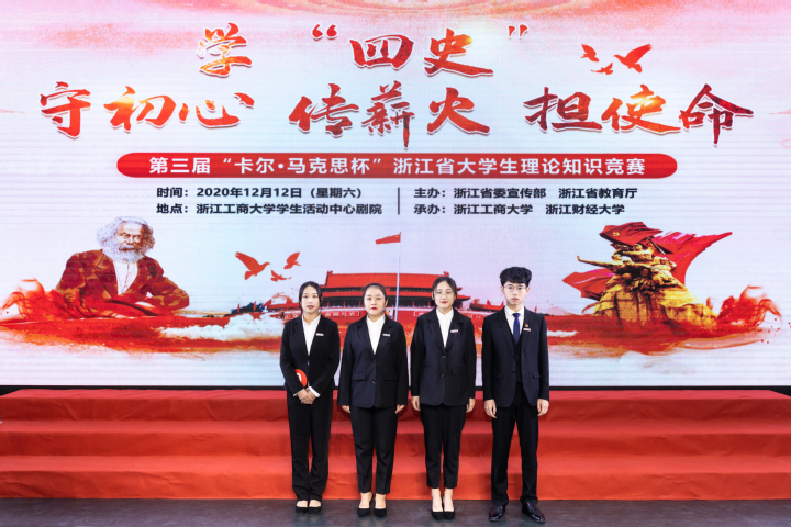 12月12日,第三届“卡尔·马克思杯”浙江省大学生理论知识竞赛决赛在浙江工商大学举行,省委宣传部、省教育厅领导、相关处室负责人、入围高校师生参加了活动。我校最终获决赛三等奖,也是时政评论环节全场唯一90分以上的高校。