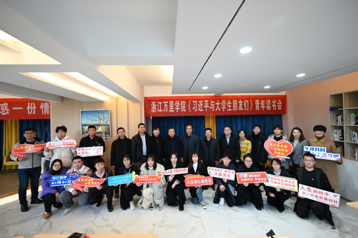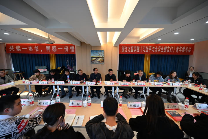 12月15日,《习近平与大学生朋友们》青年读书会在回龙校区举行,校党委书记蒋建军,党委副书记王伟忠,校党委委员、秘书长、宣传部部长王福银,校学生工作部、校团委、相关学院党委负责同志同2020级青年大学生代表围坐在一起,共读一本书,同感一份情。