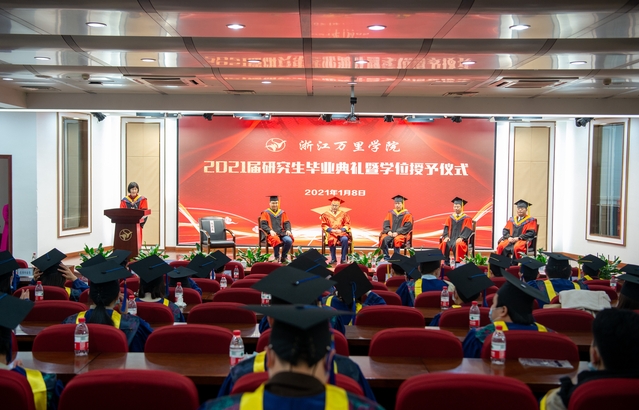1月8日下午,我校2021届研究生毕业典礼暨学位授予仪式在图书馆报告厅举行。校长应敏、副校长钱国英、党委副书记王伟忠、校长助理杨震峰、相关职能部门负责人、各相关二级学院院长书记、研究生导师代表以及2021届研究生参加了此次典礼。典礼由钱国英主持。