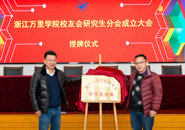 会议审议并通过了《浙江万里学院校友会研究生分会章程》以及《浙江万里学院校友会研究生分会选举办法》,选举出浙江万里学院校友会研究生分会第一届理事会成员。王伟忠为校友会研究生分会授牌,研究生部部长、校友会研究生分会会长袁勇军代表分会接牌。