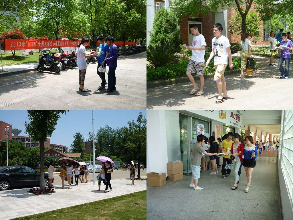 为构筑万里学子的幸福梦,我校心理健康教育与指导中心、二级学院开展了丰富多彩的“5.25大学生心理健康节”活动,为我校2013年“健康之心”活动月画上圆满的句号。 5月24日,设计艺术与建筑学院承办的“漫画大学生活”优秀作品展在学生活动小广场顺利举行,共展出30幅学生原创的描绘大学生活方式的作品,内容涉及学习、网络、爱情、人际关系、生活规律等方方面面。观看展出的一位同学说:“这些作品描绘的太逼真,把大学生活展现得淋漓尽致。我们一笑的同时,也意识到要注意生活方式,否则会影响身心健康。”也有同学表示:“我觉得,生活是一种态度,调整好态度,身边就会溢满快乐的元素。” 当天中午,心理健康教育与指导中心向全校师生派发了3800册第19期《健康之心》专辑——《生活方式与身心健康》,以图文形式直观呈现年轻人不良的生活方式,提供健康行动策略和小贴士,倡导科学健康的生活方式。与此同时,心理健康教育与指导中心撰写的《我校大学生健康生活方式调查报告》也同期发布。调查随机选择大一至大四各个专业学生700名进行调查。调查发现,我校大学生生活方式呈正态分布,总体状况良好,其中,女生明显优于男生,一年级明显优于其他年级,二年级优于三年级,而三、四年级差异不显著。 本届“健康之心”活动月的所有项目都是校院二级心理健康教师与学生团队集思广益的结晶,满足了学生的需求,受到了学生们的好评。正如许多同学所说:“历时一个月的各项活动扰动了我的思想,让我感觉得幸福其实很简单,一些小改变可能带来大幸福。” (学生事务与发展中心) | |