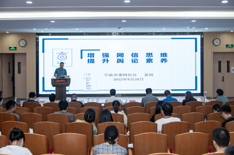 宁波市委网信办吴剑以“增强网信思维,提升舆论素养”为主题,从当前形势、所存短板、应对措施三个方面分析了当下互联网时代遇到的问题。他提醒辅导员们在面对网络舆情事件时要协同解决,抓住舆情解决的黄金时期,强调要以“管方向、管导向、管动向”三个方面为抓手应对网络舆情问题,并指出互联网传播发展要明确三个方向:网络文化要繁荣发展、网络宣传要与时俱进、网络传播要规范有序。