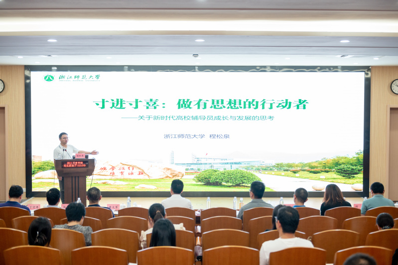 浙江师范大学宣传部融媒体中心副主任、全国辅导员素质能力大赛一等奖获得者程松泉以“寸金寸喜:做有思想的行动者”为主题,从“角色认知”“角色塑造”以及“角色检视”三个方面,结合自身工作经历探讨了新时代高校辅导员的成长与发展路径。他强调做好高校辅导员要有“3+1”的角色认知:要做一名有价值的引领者、要做一名暖心的陪伴者、要做一名专业的指导者,同时不忘记要做一名终身的学习者。而从辅导员的角色塑造上,程松泉从“五力”的视角切入,为辅导员提升自我提供了五个思路:在入脑入心上下功夫,提高信仰力;在源头活水上下功夫,提升学习力;在知行合一上下功夫,提升引领力;在精准通透上下功夫,提升宣讲力;在久久为功上下功夫,提升研究力。