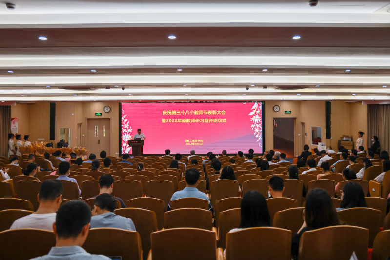 9月9日下午,我校举行庆祝第三十八个教师节表彰大会暨2022年“新教师研习营”开班仪式。校长应敏、党委书记蒋建军等校领导,相关职能部门负责人,各学院院长和书记、教师代表、新教师研习营全体教师参加。会议宣读了浙江省万里教育集团给全体教师的节日慰问信,对17名教师及3个团队进行表彰。会上,进行了入职宣誓仪式,新、老教师代表分别作了发言,交流了从师的体会与感受。蒋建军代表学校党委向全体教师致以节日问候,向新入职教师表示热烈欢迎,向受表彰的老师们表示热烈祝贺,对全体教师提出了要求:要深入学习贯彻习近平总书记关于教育系列重要讲话精神,把尊师重教落到实处,办好人民满意的教育;要牢记嘱托,做到修为师之德、立树人之志、行笃学之路,学为人师、立德修身、潜心治学、开拓创新,切实担负起为党育人、为国育才的时代重任,齐心协力向前看,撸起袖子加油干,以更加优异的成绩迎接党的二十大胜利召开。表彰大会后,应敏为全体2022年新教师研习营教师作开班第一讲。