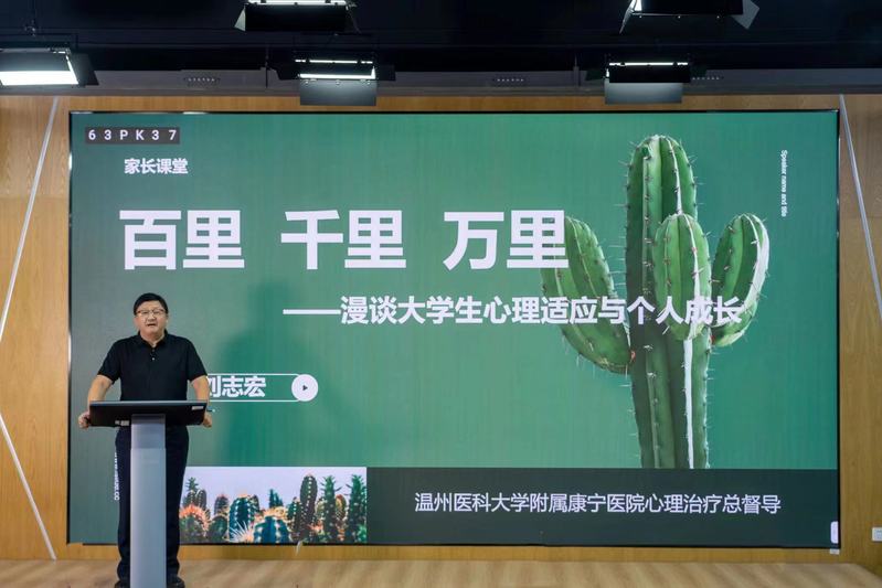 为进一步促进家校协同育人,助力大学生心理健康,9月9日晚,我校心理健康教育与指导中心邀请宁波市高校心理健康教育研究与研究中心督导、温州医科大学附属康宁医院心理治疗总督导、中国高等教育学会医学心理专业委员会委员、浙江省心身医学专业委员会常委刘志宏老师开展“百里 千里 万里——与家长聊聊大学生心理适应与成长”专题讲座。