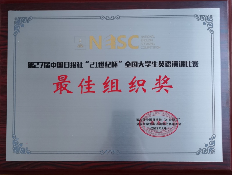 日前,中国日报社“21世纪杯”全国大学生英语演讲比赛浙江省决赛落下帷幕,我校外语学院获“最佳组织奖”,陈璐同学获三等奖。
