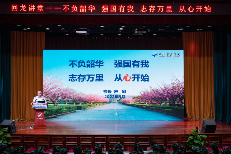 9月16日开学典礼后,校长应敏在回龙讲堂为新生作“不负韶华,强国有我,志在万里,从‘心’开始”开学第一课。
