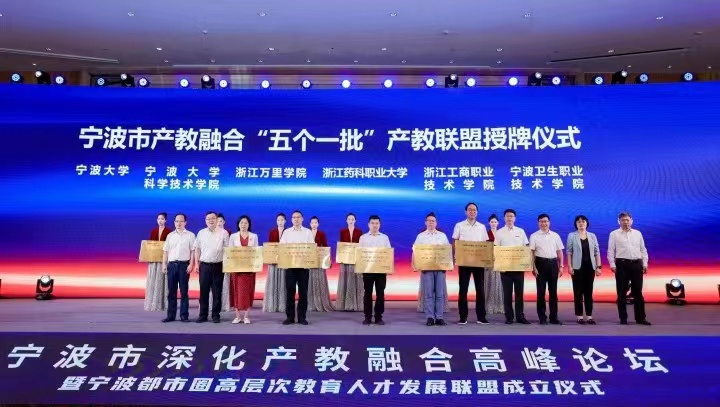 9月21日,作为2022中国浙江·宁波人才科技周重要活动之一,浙江省宁波市举行深化产教融合高峰论坛暨宁波都市圈高层次教育人才发展联盟成立仪式。我校校长应敏、相关职能部门负责人、二级学院院长参加会议。