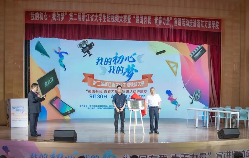 9月30日上午,由浙江省委网信办、浙江省教育厅、浙江广播电视集团、浙江省广播电影电视学会共同举办的“我的初心·我的梦”第二届浙江省大学生短视频大赛暨“强国有我 青春力量”宣讲活动走进我校。中国蓝新闻客户端、鄞响客户端同步直播。
