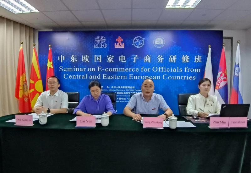 近日,由中华人民共和国商务部主办,商务部国际商务官员研修学院承办,我校宁波海上丝绸之路研究院协办的中东欧国家电子商务研修班线上开班。来自波兰、塞尔维亚、北马其顿、黑山、斯洛文尼亚5个中东欧国家的21名电子商务领域的官员、企业代表、专家参加此次研修班。商务部国际商务官员研修学院副院长刘如涛,我校副校长杨震峰、国际事务处处长蔡艳、宁波海上丝绸之路研究院常务副院长徐侠民等人出席线上开班仪式。