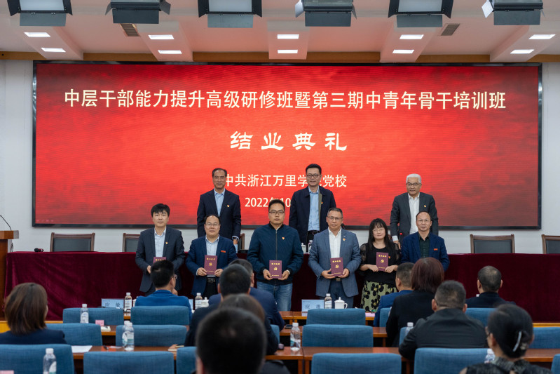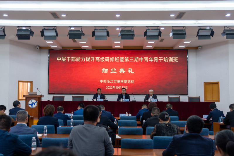10月13日下午,学校举行中层干部能力提升高级研修班暨第三期中青年骨干培训班结业典礼。浙江省万里教育集团党委书记、董事长应雄,学校党政领导班子及研修班、骨干班学员参加。结业典礼由校长应敏主持。