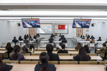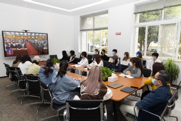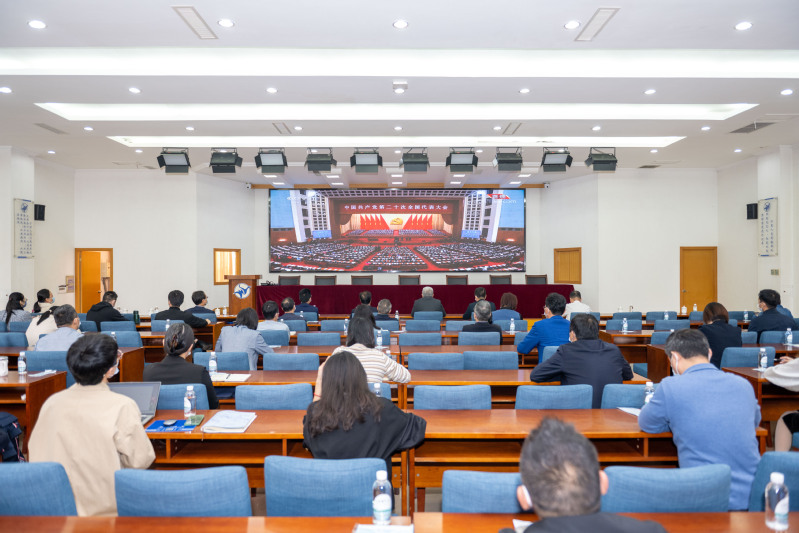 应敏、蒋建军等学校党政班子成员、机关党委委员、机关全体中层干部,以及机关各党支部委员集中观看党的二十大开幕会直播,共同见证这一历史时刻,感受团结、奋进的时代脉动。