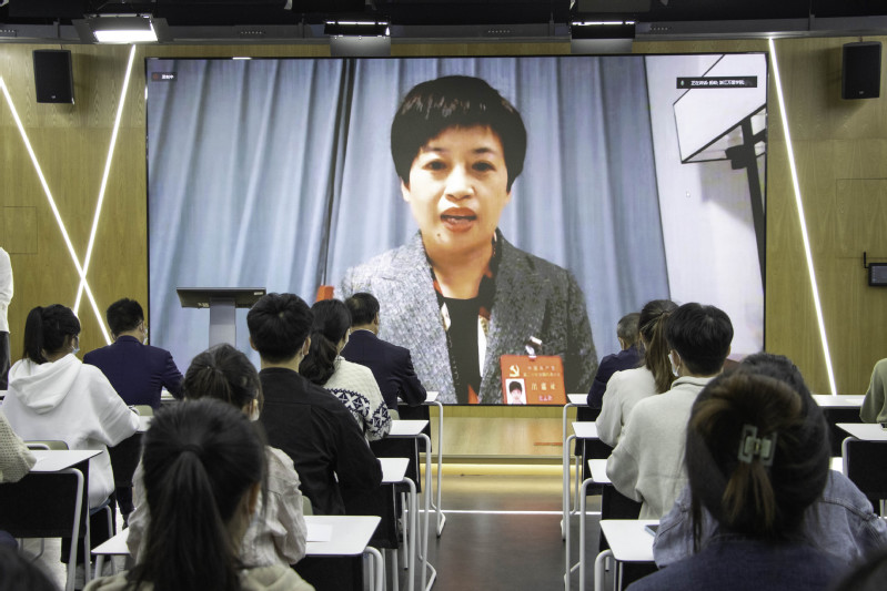 当晚,学校开展“跟着足迹学报告”大思政课活动,设计艺术与建筑学院学生与党的二十大代表、宁波市北仑区大碶街道灵峰社区党委书记史孟艳云对话,更直观感受党的二十大开幕会盛况。