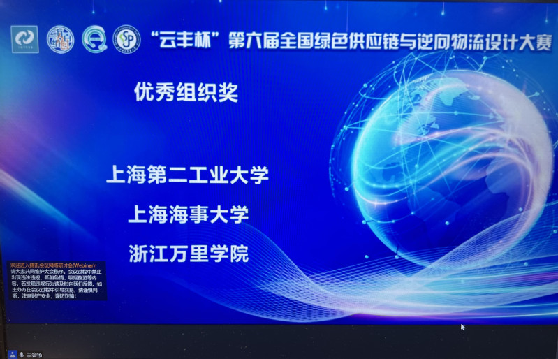 10月22日,“云丰杯”第六届全国绿色供应链与逆向物流设计大赛决赛在上海第二工业大学以线上线下相结合的方式举行。经过激烈角逐,我校物流与电子商务学院研究生的“善良的百里”团队项目《快递包装绿色化转型战略方案设计、回收箱制作及小程序研发》、“知行队”项目《J公司可循环快递箱运营战略》荣获二等奖,是浙江省高校参加本次比赛的最好成绩。学校获优秀组织奖,成为获得该奖项的三个组织之一。