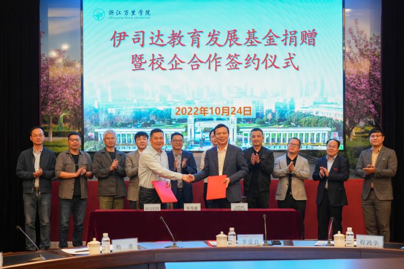 仪式上,伊司达集团向学校教育基金会捐赠人民币50万元,用于支持学校教育事业发展,陈建革代表学校接受捐赠,并向李爱良颁发捐赠证书。程鸿华与王琦峰共同签署了校企合作协议。