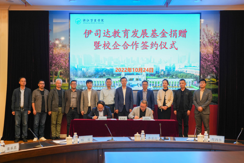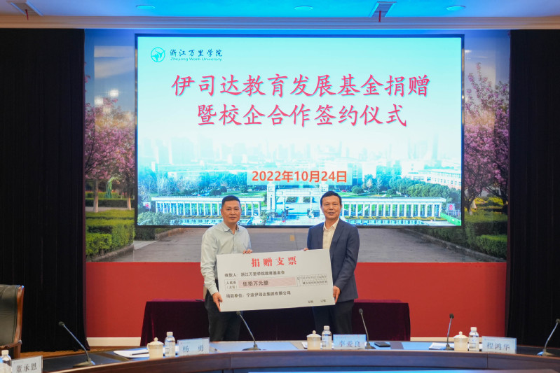 10月24日下午,我校举行伊司达教育发展基金捐赠暨校企合作签约仪式。宁波伊司达集团有限公司(以下简称“伊司达集团”)董事长李爱良、集团办公室主任程鸿华,我校副校长马建荣,副校长、教育基金会常务副理事长陈建革,教务部部长杨华、物流与电子商务学院院长王琦峰等出席。校办主任、教育基金会秘书长林德操主持捐赠仪式。