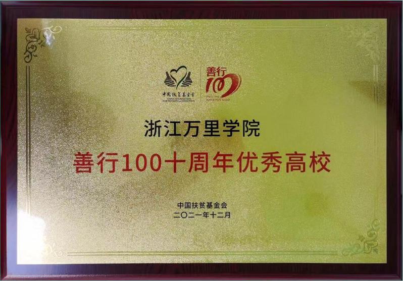近日,“向善而行共建美好”善行100公益活动十周年工作总结会在北京圆满落幕。百余所高校指导老师、大学生社团负责人和大学生志愿者线上参会,参与人次达76.7万。会上,我校喜获“善行100十周年优秀高校”、“善行100十周年优秀高校社团”(浙江万里学院公益创业研究会)等荣誉称号。