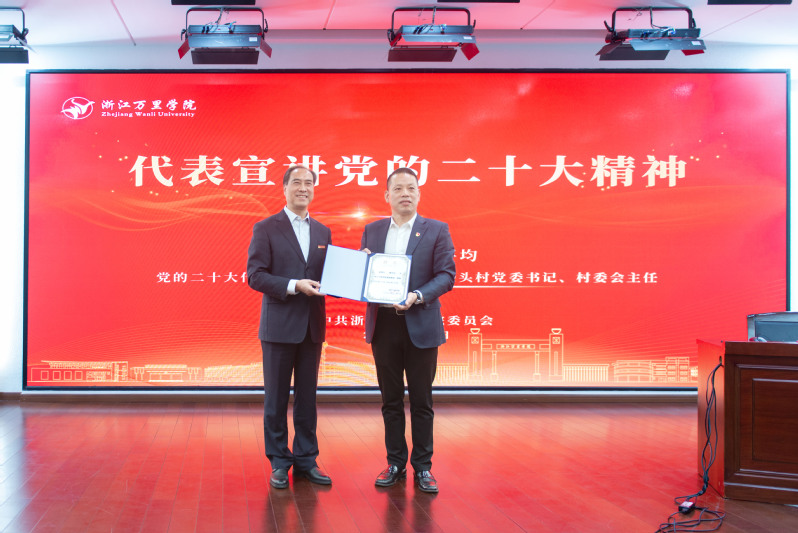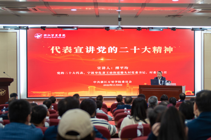 11月8日下午,党的二十大代表、滕头村党委书记、村委会主任傅平均来到我校,宣讲党的二十大精神。会议由校党委书记蒋建军主持。