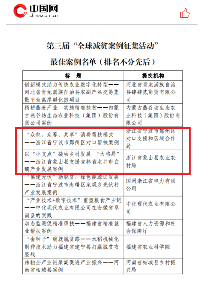 此前,在鄞州区农业农村局和象山县农业农村局的委托下,我校对口协作和反贫困研究院承接了以上两个案例的撰写工作,课题组成员通过走访,对两个案例的背景、项目实施情况进行了调研,在调研的基础上,通过数据分析,对项目的成效进行评估和研究,最后得出项目获得成功的经验和启示。