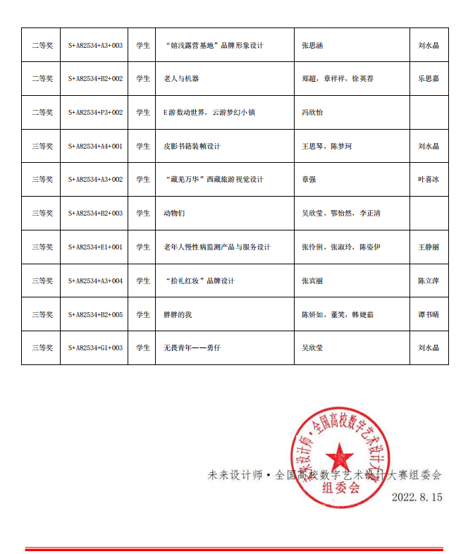 我校参赛团队秉承大赛“设计为人民服务,培养未来设计师”的理念,坚持艺术与技术并重、学术与公益并重,倡导可持续发展,绿色低碳设计,传承红色文化,助力乡村振兴。参赛作品关注环境保护、乡村振兴、家庭亲情、关爱老人、传承传统文化等众多热点题材,受到了大赛评委组的高度肯定。