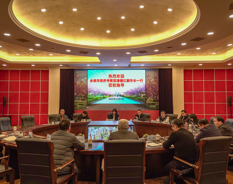 12月5日下午,余姚市副市长潘健红及市商务局、电商产业园区等单位负责人一行来校调研。校长应敏、副校长马建荣及教务、校地合作部门和部分二级学院负责人参加会议。