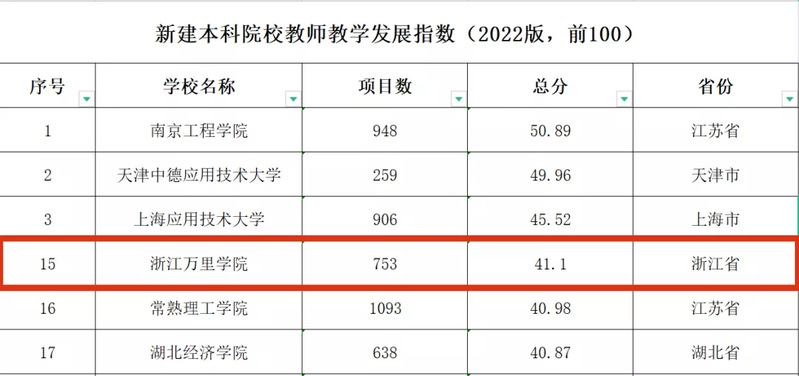 近日,中国高等教育学会在线发布了“2022版全国普通高校教师教学发展指数”,在全国新建本科院校教师教学发展指数前100的榜单中,我校位列全国第15位、全省第1位。