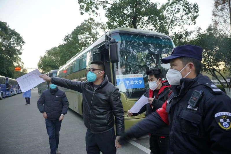 早上六点不到,安保便到岗,检查健康码、引导测温、引路指导,为平安考试做好第一层保障。我校有部分考生需到到市内其他考点参加考试,学校为他们准备了“防疫爱心包”,爱心大巴,乘往宁波大学、宁波大学(北区)及宁波工程学院等考点。
