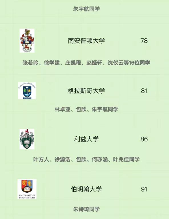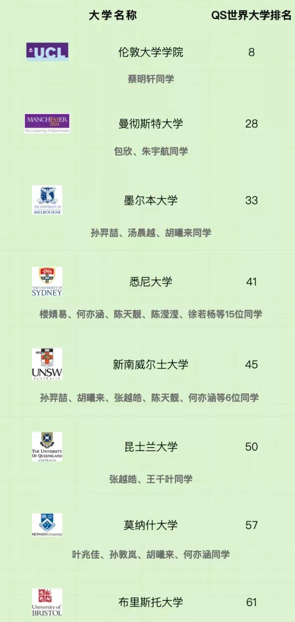 截至目前,在国际升研成功的中德学子中,80.4%的学生获得2022-2023年QS世界大学排名前100的全球顶尖名校硕士录取,包括英国伦敦大学学院(QS排名8)、英国曼彻斯特大学(QS排名28)、澳大利亚墨尔本大学(QS排名33)等世界著名大学,超过97%的学生被QS世界排名前200的高校录取。