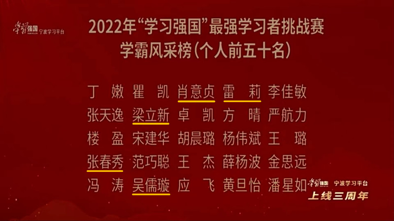 近日,“学习强国”宁波学习平台上线三周年主题活动精彩上演。本次三周年活动以“情系二十大 强国正青春”为主题,充分展现宁波青年的昂扬姿态、青春风采。