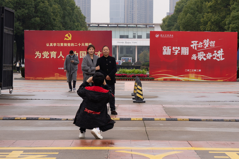 “之前只能从学校的视频号看看孩子学习生活的地方,今天终于有机会进来逛逛校园,感觉很激动。”国际经济与贸易22C1班沈如恺的妈妈说,他们夫妻俩和孩子的爷爷奶奶一起送孩子到学校,“爷爷奶奶总说想看看照片里的空中花园和水上图书馆,今天终于实现了这个愿望。”沈如恺的妈妈说,学校的硬件设施很齐全,绿化也很好,忍不住拍了好多校园照片,到时候带回去给孩子的外公外婆看看。
